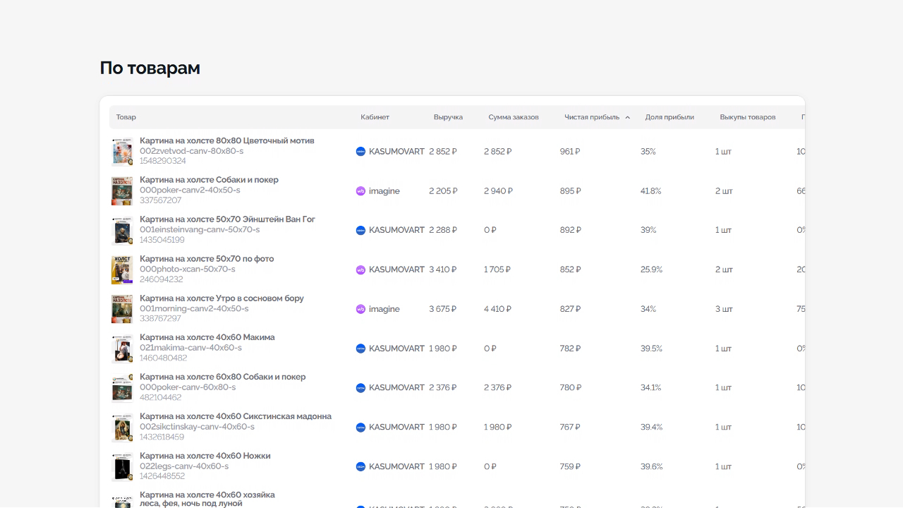 Сразу видно, какие товары приносят прибыль, а какие уходят в минус — и по какой причине.